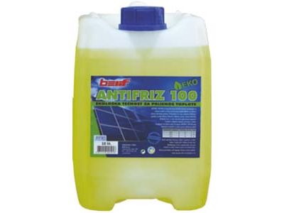 ANTIFRIZ 100 EKO je koncentrovana ekološka tečnost namijenjena za prijenos toplote i zaštitu od mržnjenja i korozije. Formulisano na bazi neotrovnog monopropilen glikola za solarne i sisteme centralnog grijanja. Primjenjuje se u svim sistemima hlađenja i grijanja u prehrambenoj industriji: mljekare, pivare, mesna industrija, hladnjače kao i u svim sistemima gdje postoji mogućnost kontakta rashladne tečnosti sa hranom i vodom.