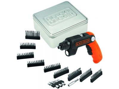 Akumulatorski odvijač 3.6V BLACK + DECKER kombinira dva alata: odvijač i džepnu svjetiljku. Idealno za ugradnju namještaja, polica, vrata i šarki. Odvijač ima ergonomski dizajn i mogućnost rotiranja u 3 položaja koji jamče izvrsno urtanje. Uključene LED svjetiljke s 35 lumena namijenjene su za osvjetljenje radnih površina. Oprema uključuje 98 dodataka za odvijače, punjač i kutija za čuvanje alata.-Baterija: 3.6V- okretanje: 180 o / min-LED svjetiljka za bolju vidljivost u tamnim kutovimaprilagodljiva trovratna okretna ručica pruža fleksibilnost pri radu i na dostupnim mrežama.