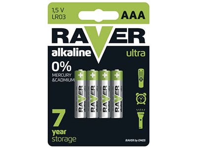 marka Raverveličina baterije AAAmogućnost punjenja nehemijski sastav alkalankategorija / serija Ultra alkalnakapacitet nije navedenbroj ciklusa punjenja koji se ne mogu punititip LR03 (AAA baterija)napon 1,5 Vdimenzije 10,5 × 44,5 mmtežina 11,5 gradna temperatura od -20 ° C do +60 ° Cmaks. rok trajanja 7 godinapakiranje 4 kom, blister