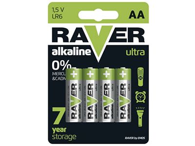 marka - Raverveličina baterije - AAmogućnost punjenja - nehemijski sastav - alkalankategorija / serija - Ultra alkalnakapacitet nije navedenbroj ciklusa punjenj a- ne mogu punititip LR6 (AA baterija)napon 1,5 Vdimenzije 14,5 × 50,5 mmtežina 23,8 gradna temperatura od -20 ° C do +60 ° Cmaks. rok trajanja 7 godinapakiranje 4 kom, blister