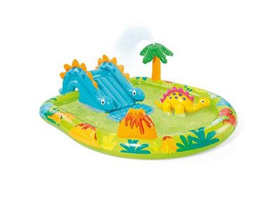 Zabavne karakteristike: Uključuje tobogan, palmu koja prska vodu i dinosaurusa na naduvavanje
