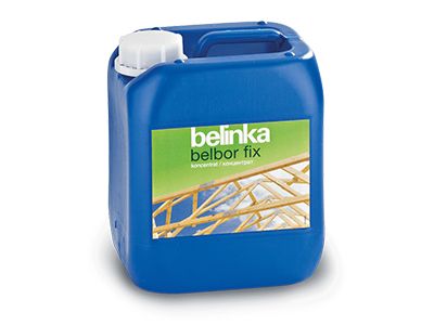 Belbor Fix Koncentrat tekuće je impregnacijsko sredstvo koje se ne može isprati, a namijenjeno je preventivnoj zaštiti drvenih krovnih konstrukcija od insekata, plavila i truljenja.- impregnacija za krovne konstrukcije- zaštita od od insekata, plavila i truljenja- fiksira se u drvo (nakon 24 sati)Prije upotrebe koncentrat razrijedite vodom. Aktivna komponenta dobro prodire u drvo te se nakon 24 sata fiksira. Samostalno ga koristimo tek za konstrukcije koje nisu direktno izložene vremenskim utjecajima. Ako Belborom Fix impregniramo vremenskim utjecajima izloženo drvo, moramo ga premazati i lazurom koja sadrži organska otapala (Beltonom ili Beltopom). Koncentrat je na raspolaganju u žutoj nijansi. Ne sadrži teške metale te je namijenjen profesionalnoj i općoj upotrebi.UpotrebaKoncentrat prije upotrebe treba dobro promiješati i razrijediti vodom u omjeru 1 : 4 (1 dio koncentrata : 4 dijela vode). Nanosi se potapanjem, polijevanjem, premazivanjem ili vakuumskom impregnacijom na suho drvo (najviše 18% vlažnosti) koje je mehanički obrađeno i bez ostataka kore. Temperatura drva i zraka mora biti viša od 5 oC. Otopina Belbor Fix u normalnim je vremenskim uvjetima suha nakon 24 sata. Za to vrijeme drvo treba zaštititi od kiše. Visoka vlažnost zraka i/ili niska temperatura zraka produžavaju vrijeme sušenja.Tehnički podaciSastav: biocidi, bojilo, dodaci i voda Potrošnja: za učinkovitu zaštitu drva preporučujemo 0,032–0,04 l koncentrata, odnosno 0,16–0,2 l pripremljene otopine na 1 m2 drva (5 l koncentrata dovoljno je za 130–150 m2 drva). Za vakuumsku impregnaciju preporučujemo nanošenje 16–20 litara koncentrata na 1 m3 drva. Veća potrošnja poboljšava zaštitu. Čišćenje alata: operite vodom Skladištenje: u zatvorenoj originalnoj ambalaži u natkrivenoj prostoriji. Rok trajanja nalazi se na ambalaži. NE SMIJE SE SMRZNUTI! Jedinice pakiranja: 5 l (koncentrat Belbor Fix)