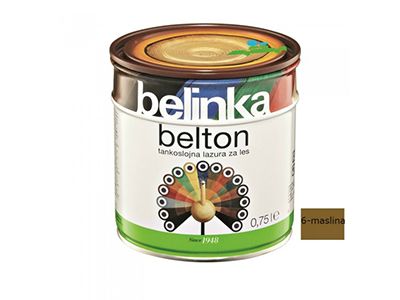 Belton je tankoslojna lazura koja štiti drvo od vremenskih utjecaja, a ujedno ga boja i oplemenjuje njegovu površinu.- tankoslojni lazurni premaz- štiti drvo od vremenskih utjecaja- za zaštitu drva unutar i izvan zgrada- lagano matiran, manje svilenkasti završni izgled- MIXTankoslojni Belton prodire u drvo te je prikladan za zaštitu dimenzijski nestabilnog drva. Koristi se zbog postizanja lagano matiranog završnog izgleda površine, pri čemu struktura drva nakon premazivanja ostaje vidljiva. Na raspolaganju je u 20 standardnih nijansi. Beltonom zaštićujemo vanjske dijelove krovišta, fasadne obloge, ograde, vrtne kućice, vrtni namještaj te druge drvene elemente unutar i izvan zgrada. Ako je drveni element izložen vremenskim utjecajima ili se nalazi u vlažnim prostorijama, preporučujemo impregnaciju Bellesom. Pri obnavljanju možete djelomično izbjeći tamnjenje površine tako da obojenom Beltonu dodate najviše 30 % bezbojne lazure i takvom mješavinom premažete površinu.UpozorenjeBezbojni Belton nije prikladan za zaštitu drva na otvorenom. Ako želimo sačuvati prirodan izgled drva koje je izloženo vremenskim utjecajima, trebamo ga zaštititi Beltopom uv plus.UpotrebaPremaz najprije dobro promiješajte. Nanosi se nerazrijeđen kistom u tri sloja na suho, čisto i izbrušeno drvo. Vani ili u vlažnim prostorijama drvo najprije impregnirajte Bellesom. Pri normalnim vremenskim uvjetima neka bude vrijeme sušenja između pojedinih slojeva premaza 24 sata. Alat odmah nakon uporabe očistite Belsolom ili razrjeđivačem za alkidne premaze (white špiritom).Tehnički podaciSastav: alkidne smole, svjetlosno i vremenski postojani pigmenti, aditivi i bezaromatska otapala. Sadrži 2-butanon oksim. Može izazvati alergijsku reakciju. Broj slojeva: 3 sloja (na otvorenom i u vlažnim prostorijama najprije sloj Bellesa) Potrošnja: 1 l za 10–12 m2 kod tri sloja premaza (ovisno o vrsti i kvaliteti drva, površinskoj obradi te načinu nanošenja) Sušenje: sljedeći sloj nakon 24 sata (u normalnim uvjetima) Čišćenje alata: Belsolom ili white spiritom Skladištenje: čuvajte ga u originalnoj ambalaži pri temperaturi nižoj od 30 °C, izvan dohvata djece. Neiskorišteni ostatak Beltona prelijte u odgovarajuću manju ambalažu (koja mora biti napunjena do vrha) i dobro zatvorite. Ne sadržava biocide. Plamenišče: nad 61 °C Ambalažne jedinice: 0,75 l, 2,5 l, 5 l, 10 lIzračun potrošnje1m2 = 0,05lit (za jedan nanos)