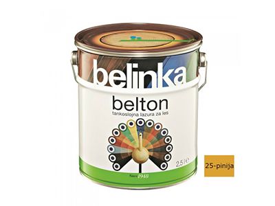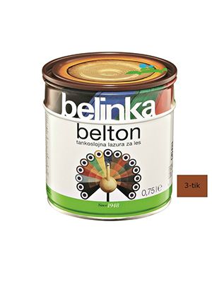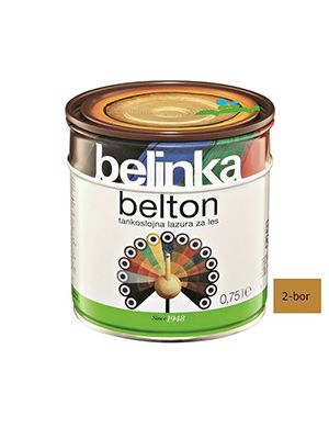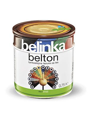 Belton je tankoslojna lazura koja štiti drvo od vremenskih utjecaja, a ujedno ga boja i oplemenjuje njegovu površinu.- tankoslojni lazurni premaz- štiti drvo od vremenskih utjecaja- za zaštitu drva unutar i izvan zgrada- lagano matiran, manje svilenkasti završni izgled- MIXTankoslojni Belton prodire u drvo te je prikladan za zaštitu dimenzijski nestabilnog drva. Koristi se zbog postizanja lagano matiranog završnog izgleda površine, pri čemu struktura drva nakon premazivanja ostaje vidljiva. Na raspolaganju je u 20 standardnih nijansi. Beltonom zaštićujemo vanjske dijelove krovišta, fasadne obloge, ograde, vrtne kućice, vrtni namještaj te druge drvene elemente unutar i izvan zgrada. Ako je drveni element izložen vremenskim utjecajima ili se nalazi u vlažnim prostorijama, preporučujemo impregnaciju Bellesom. Pri obnavljanju možete djelomično izbjeći tamnjenje površine tako da obojenom Beltonu dodate najviše 30 % bezbojne lazure i takvom mješavinom premažete površinu.UpozorenjeBezbojni Belton nije prikladan za zaštitu drva na otvorenom. Ako želimo sačuvati prirodan izgled drva koje je izloženo vremenskim utjecajima, trebamo ga zaštititi Beltopom uv plus.UpotrebaPremaz najprije dobro promiješajte. Nanosi se nerazrijeđen kistom u tri sloja na suho, čisto i izbrušeno drvo. Vani ili u vlažnim prostorijama drvo najprije impregnirajte Bellesom. Pri normalnim vremenskim uvjetima neka bude vrijeme sušenja između pojedinih slojeva premaza 24 sata. Alat odmah nakon uporabe očistite Belsolom ili razrjeđivačem za alkidne premaze (white špiritom).Tehnički podaciSastav: alkidne smole, svjetlosno i vremenski postojani pigmenti, aditivi i bezaromatska otapala. Sadrži 2-butanon oksim. Može izazvati alergijsku reakciju. Broj slojeva: 3 sloja (na otvorenom i u vlažnim prostorijama najprije sloj Bellesa) Potrošnja: 1 l za 10–12 m2 kod tri sloja premaza (ovisno o vrsti i kvaliteti drva, površinskoj obradi te načinu nanošenja) Sušenje: sljedeći sloj nakon 24 sata (u normalnim uvjetima) Čišćenje alata: Belsolom ili white spiritom Skladištenje: čuvajte ga u originalnoj ambalaži pri temperaturi nižoj od 30 °C, izvan dohvata djece. Neiskorišteni ostatak Beltona prelijte u odgovarajuću manju ambalažu (koja mora biti napunjena do vrha) i dobro zatvorite. Ne sadržava biocide. Plamenišče: nad 61 °C Ambalažne jedinice: 0,75 l, 2,5 l, 5 l, 10 lIzračun potrošnje1m2 = 0,05 lit (za jedan nanos)