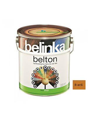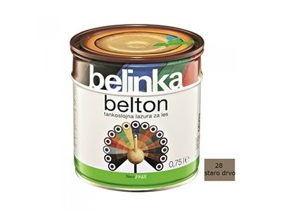 Belton je tankoslojna lazura koja štiti drvo od vremenskih utjecaja, a ujedno ga boja i oplemenjuje njegovu površinu.- tankoslojni lazurni premaz- štiti drvo od vremenskih utjecaja- za zaštitu drva unutar i izvan zgrada- lagano matiran, manje svilenkasti završni izgled- MIXTankoslojni Belton prodire u drvo te je prikladan za zaštitu dimenzijski nestabilnog drva. Koristi se zbog postizanja lagano matiranog završnog izgleda površine, pri čemu struktura drva nakon premazivanja ostaje vidljiva. Na raspolaganju je u 20 standardnih nijansi. Beltonom zaštićujemo vanjske dijelove krovišta, fasadne obloge, ograde, vrtne kućice, vrtni namještaj te druge drvene elemente unutar i izvan zgrada. Ako je drveni element izložen vremenskim utjecajima ili se nalazi u vlažnim prostorijama, preporučujemo impregnaciju Bellesom. Pri obnavljanju možete djelomično izbjeći tamnjenje površine tako da obojenom Beltonu dodate najviše 30 % bezbojne lazure i takvom mješavinom premažete površinu.UpozorenjeBezbojni Belton nije prikladan za zaštitu drva na otvorenom. Ako želimo sačuvati prirodan izgled drva koje je izloženo vremenskim utjecajima, trebamo ga zaštititi Beltopom uv plus.Premaz najprije dobro promiješajte. Nanosi se nerazrijeđen kistom u tri sloja na suho, čisto i izbrušeno drvo. Vani ili u vlažnim prostorijama drvo najprije impregnirajte Bellesom. Pri normalnim vremenskim uvjetima neka bude vrijeme sušenja između pojedinih slojeva premaza 24 sata. Alat odmah nakon uporabe očistite Belsolom ili razrjeđivačem za alkidne premaze (white špiritom).Tehnički podaciSastav: alkidne smole, svjetlosno i vremenski postojani pigmenti, aditivi i bezaromatska otapala. Sadrži 2-butanon oksim. Može izazvati alergijsku reakciju. Broj slojeva: 3 sloja (na otvorenom i u vlažnim prostorijama najprije sloj Bellesa) Potrošnja: 1 l za 10–12 m2 kod tri sloja premaza (ovisno o vrsti i kvaliteti drva, površinskoj obradi te načinu nanošenja) Sušenje: sljedeći sloj nakon 24 sata (u normalnim uvjetima) Čišćenje alata: Belsolom ili white spiritom Skladištenje: čuvajte ga u originalnoj ambalaži pri temperaturi nižoj od 30 °C, izvan dohvata djece. Neiskorišteni ostatak Beltona prelijte u odgovarajuću manju ambalažu (koja mora biti napunjena do vrha) i dobro zatvorite. Ne sadržava biocide. Plamenišče: nad 61 °C Ambalažne jedinice: 0,75 l, 2,5 l, 5 l, 10 lIzračun potrošnje1m2 = 0,05 lit (za jedan nanos)