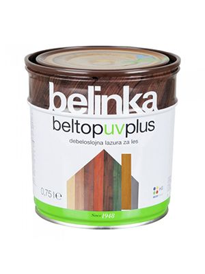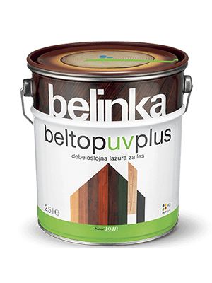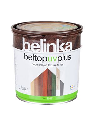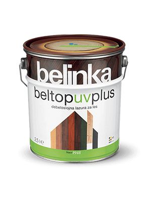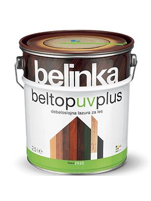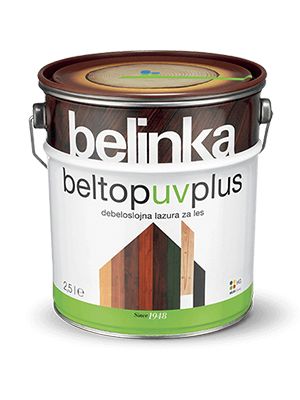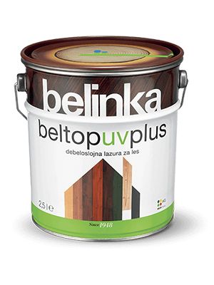 Beltop UV Plus je debeloslojna lazura koja je posebno pogodna za zaštitu drveta izloženog lošijim vremenskim uticajima za zaštitu drveta izloženog lošijim vremenskim uticajima preporučujemo za prozore i vrata sjajniji završni izgled površine.Pored UV filtera i apsorbera sadrži i hvatače slobodnih radikala koji najefikasnije sprečavaju propadanje premaza. Drvetu daje dimenzionu stabilnost i zato ga preporučujemo za prozore i vrata i za zaštitu svih elemenata od čvrstog listopadnog drveta. Biramo ga kada želimo sjajniji završni izgled površine. Beltop UV Plus zbog svoje visoke viskoznosti ne kaplje s četke. Izrađujemo ga u 17 standardnih nijansi.Drvo izloženo vremenskim uticajima uvek pre nanošenja Beltopa UV Plus impregnirajte Bellesom. Da bi se prilikom obnavljanja izbeglo potamnjivanje površine, obojenom Beltopu UV Plus može se dodati najviše ista količina bezbojnog Beltopa UV Plus i tako pripremljenom mešavinom se premazuje površina.Kada premazujemo baštenski nameštaj ili drvene elemente koji će biti mehanički opterećeni, pre opterećenja ih sušimo nedelju dana.UpozorenjeBezbojni Beltop UV Plus br.1 nije pogodan kao završni premaz preko tamno obojenih površina ili za premazivanje tamnih vrsta drveta, jer posebni UV filteri i apsorberi mogu da prouzrokuju mlečni izgled površine.Pre upotrebe promešati, ne razređivati. Nanosimo četkicom ili valjkom u 2 sloja na suvo, izbrušeno i prethodno očišćeno drvo(Beltop UV Plus br. 1 u 3 sloja), koje je bilo prethodno impregnirano Bellesom. Broj slojeva prilagoditi propisanoj potrošnji. Pri normalnim vremenskim uslovima vreme sušenja između pojedinačnih slojeva premaza iznosi 24 sata. Alat odmah nakon upotrebe očistite