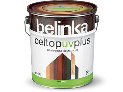 Beltop UV Plus je iznimno postojana debeloslojna lazura. Namijenjena je zaštiti drva u najzahtjevnijim vremenskim uvjetima.- zaštita drva koje je više izloženo vremenskim utjecajima- osobito prikladan za prozore i vrata- završni izgled površine je sjajan- 20 standardnih tonova bojeNaime, pored UV filtra i apsorbera sadrži i hvatače slobodnih radikala, koji najučinkovitije sprječavaju propadanje premaza. Drvu daje dimenzijsku stabilnost, zato ga preporučujemo za prozore i vrata te za zaštitu svih elemenata iz tvrdog drva bjelogorice. Beltop UV Plus je najbolji izbor kada želite sjajniji završni izgled površine. Na raspolaganju je u 20 standardnih nijansi. Vremenskim utjecajima izloženo drvo uvijek treba prije premazivanja Beltopom UV Plus impregnirati Bellesom. Pri premazivanju vrtnog namještaja ili drvenih elemenata koji će biti mehanički opterećeni potrebno je sušenje u trajanju od tjedan dana prije opterećenja.UpozorenjeBezbojni Beltop UV Plus br. 1 nije prikladan za premazivanje tamnijih površina, jer posebni UV apsorberi i filteri mogu stvoriti mliječni izgled površine.UpotrebaPrije uporabe treba ga promiješati, nikako ne razrjeđivati. Nanosi se u 2 sloja kistom ili valjkom na suho i obrušeno drvo, očišćeno od prašine (Beltop UV Plus br. 1 u 3 sloja), kojeg smo najprije impregnirali Bellesom. Broj slojeva prilagoditi propisanoj potrošnji. Pri normalnim vremenskim uvjetima vrijeme sušenja između pojedinih slojeva premaza treba biti 24 sata. Alat odmah nakon uporabe očistiti Belsolom ili razrjeđivačem za alkidne premaze (white špiritom).Tehnički podaciSastav: alkidne smole, svjetlosno i vremenski postojani pigmenti, UV filteri, UV apsorberi, lovci slobodnih radikala, voskovi i bezaromatska otapala. Sadrži 2-butanon oksim i bis (1,2,2,6,6-pentametil-4-piperidil) sebakat. Može izazvati alergijsku reakciju Broj slojeva: u 2 sloja (na otvorenom najprije 1 premaz Bellesa); Beltop UV Plus br. 1 u 3 sloja Potrošnja: 1 l nijansirane lazure može se premazati 8–10 m2 drva u 2 sloja (bezbojne 6–10 m2), ovisno o vrsti drva i načinu nanošenja Sušenje: slijedeći premaz najranije za 24 sata Čišćenje alata: Belsolom ili white spiritom Čuvanje: u originalnom pakiranju pri temperaturama ispod 30 °C, izvan dohvata djece. Neiskorištenu lazuru treba preliti u odgovarajuću manju ambalažu, tako da bude do vrha puna i dobro zatvorena. Plamište: iznad 61 °C Jedinice pakiranja: 0,75 l, 2,5 l, 5 l, 10 lIzračun potrošnje1m2 = 0,05 lit (za jedan nanos)