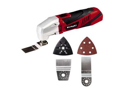 Einhell multifunkcionalni alat TC-MG 250 CE je kompaktan svestrani uređaj koji podržava ambiciozne majstore tokom proširenja, renoviranja. Testerisanje, brušenje, struganje i još mnogo toga su brzi i laki sa ovim praktičnim svestranim uređajem. Snažni motor od 250 W nudi dovoljnu snagu za radno intenzivne projekte, a elektronika brzine omoguc´ava rad primjeren materijalu i primjeni. Konstantna elektronika obezbjeđuje doslijedne performanse. 12-smjerni podesivi magnetni adapter za alat omoguc´ava laku promijenu i optimalno pozicioniranje pribora. Prekidač sa funkcijom zaključavanja olakšava dugotrajan rad. Multifunkcionalni alat ima ugao oscilovanja od 3° i zahvaljujuc´i svom tankom, ergonomskom dizajnu sa mekim površinama za rukovanje, uvijek je udoban i siguran za držanje. Isporučeni uređaj za usisavanje prašine može se montirati bez alata. Isporuka uključuje list testere za uranjanje za drvo i plastiku i šestougaoni ključ za promjenu alata. Pored toga, isporuka uključuje trouglastu brusnu ploču, devet brusnih papira (3k K60, 3k K80, 3k K120) i strugač.