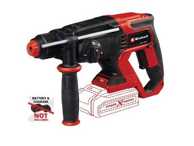 Einhell akumulatorska čekić bušilica TE-HD 18/20 Li-Solo je moc´an član Power X-Change sistema, gdje se baterije, punjači i sistemski uređaji mogu fleksibilno kombinovati. Zahvaljujuc´i 4 funkcije, moc´ni rotacioni čekic´ se ne koristi samo za bušenje sa čekic´em, vec´ i za bušenje i rušenje sa i bez fiksiranja dietla. Pneumatski udarni mehanizam obezbeđuje moc´nu udarnu silu od 1.8 džula. Akumulatorski čekic´ buši rupe prečnika do 30 mm u drvetu, 20 mm u betonu i 13 mm u metalu. Snažni uređaj postiže maksimalnu brzinu od 4.750 o/min dok je praznom hodu max. 1200 o/min. Sa svom snagom, elektronika brzine obezbeđuje rad primeren materijalu i primjeni. Univerzalna SDS-Plus glava je poluautomatska. Zahvaljujuc´i svom ergonomskom obliku sa mekim površinama za rukovanje i dodatnom drškom, rotacioni čekic´ od 2.6 kg leži bezbedno u ruci čak i kada buši teže materijale. Akumulatorska čekić bušilica je dodatno opremljena LED svetlom za optimalno osvetljenje radnog prostora i podesivim graničnikom dubine za precizno bušenje rupa. Isporuka ne uključuje bateriju ili punjač, ali su dostupni zasebno, na primer kao praktičan Power X-Change starter kit.