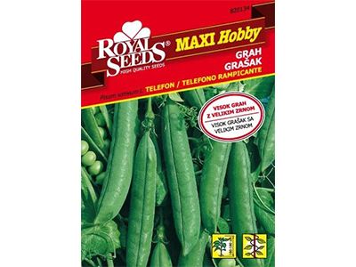 Telefon je srednje kasan (oko 85-90 dana) i vrlo visok (160-180 cm) grašak. Mahune su tamnozelene, duge oko 11-12 cm, zrna naborana.