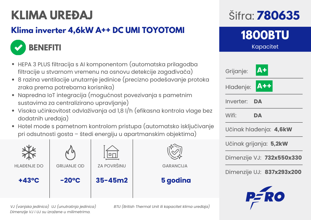 Klima inverter 4,6kW A++ DC -15°C TOYOTOMI