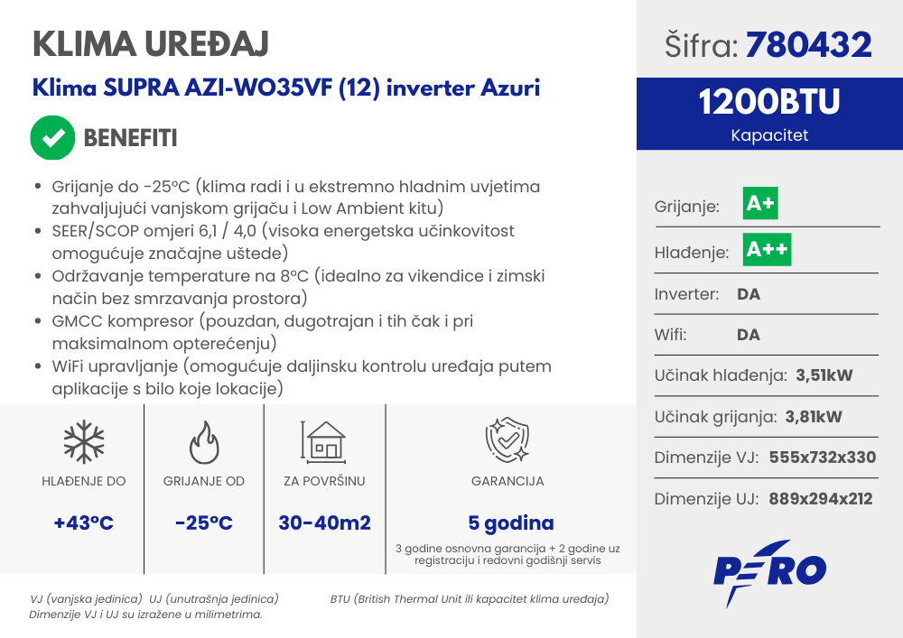 Klima SUPRA AZI-WO35VF (12) inverter Azuri