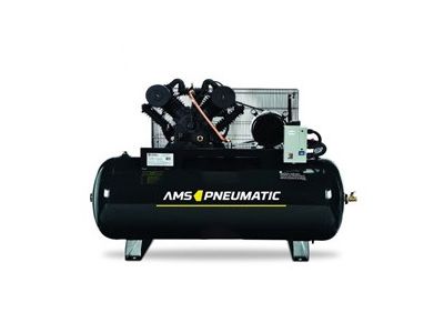 AMS PNEUMATIC tip sa duplim cilindrom, dva cilindra 230V/50Hz, 3.0HP / 2.2Kw, 2850RPM, Aluminum motor, 100L boca, 2.75mm debljina boce dimenzija boce 400x550mm, protok vazduha 316L/Min & 11.2cfm, 8Bar / 116PSI, dva izlaza evropska, CE prekidač L tip metalne ručke , sa CE/EMC/ROHS/NOISE.
