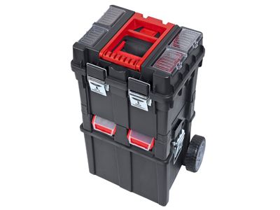 Kotači učvršćeni slojem gume, metalna osovina, HD ručke, metalni zatvarači, organizatori u poklopcu, polikarbonatni poklopci organizatora, četiri ergo kutije 2 Plus.