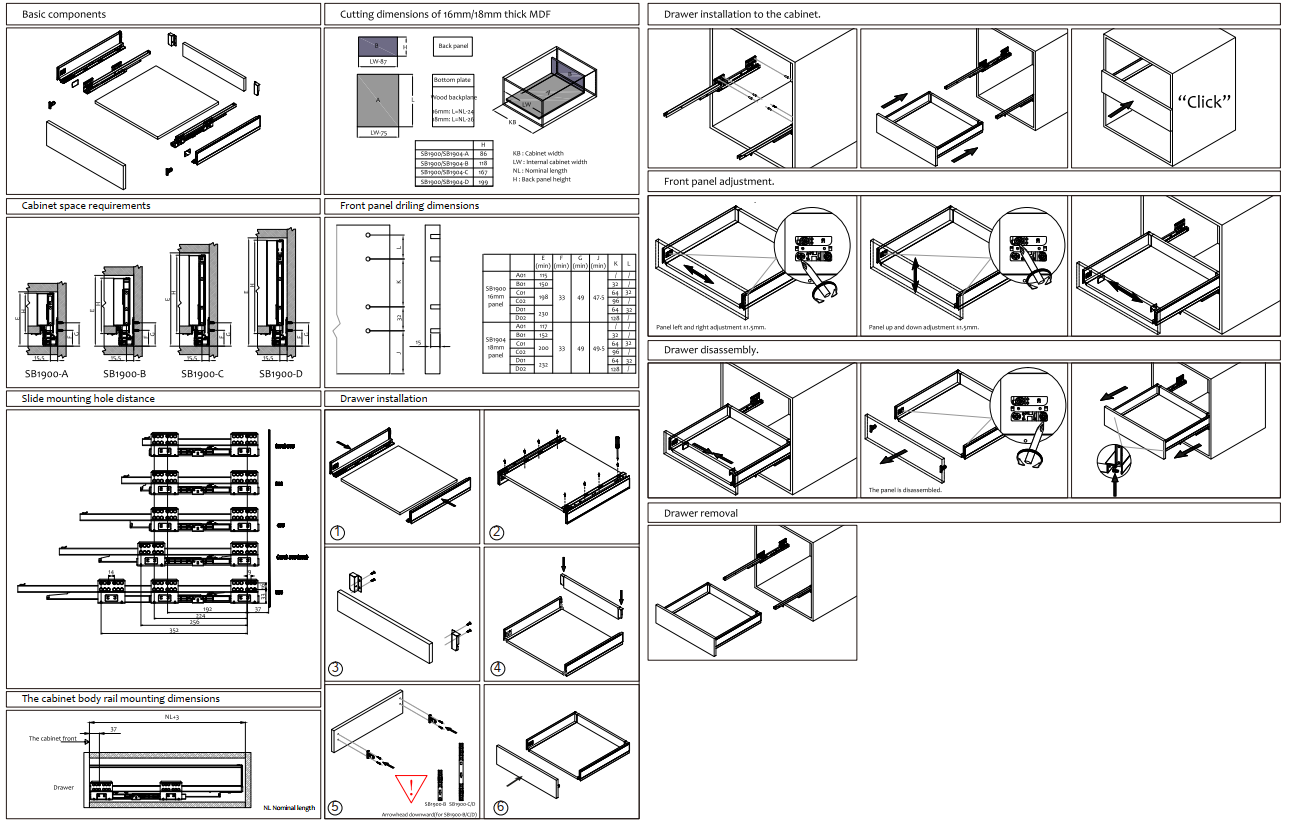 Ladica SLIM BOX 18mm; 40kg puna izvl. 167x500mm BIJELA