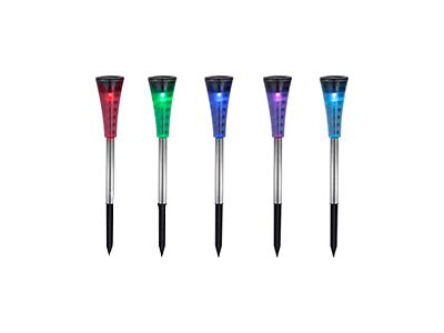 Solarna lampa od nehrđajućeg čelika, prozirna satenizirana plastika, blister pakovanje od 5, IP44, mjenjač boja, uklj. 1 x 40 mAh Ni-Mh, D: 40, H: 270, uklj. 1xRGB LED 0,06W 3.2V, šareno