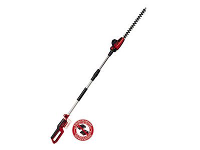 Einhell GC-HH 18/45 Li-T Solo akumulatorske teleskopske škare za živicu član su obitelji Power X-Change. Oštrice na škarama za živicu izrađene su od laserski rezanog i dijamantno brušenog čelika i predviđene su za maksimalnu duljinu rezanja od 410 mm i do 1 400 rezova u minuti. Fleksibilnost pruža glava motora sa 7 postavki nagiba i zakretnom glavnom ručkom. Dodatno je gumirano područje za držanje koje osigurava čvrsto i sigurno držanje, kao i remen koji također potiče ergonomsko rukovanje. Robusni metalni zupčanik dizajniran je za dugi vijek trajanja. Isporučuje se čvrst štitnik oštrice za sigurno skladištenje i lak transport. Ovaj proizvod dolazi bez baterije i bez punjača, oni su dostupni zasebno, npr. kao praktični početni starter setovi.