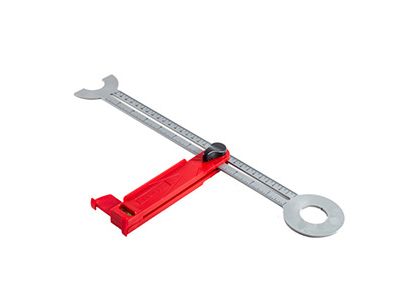 KarakteristikeOznačava tačan položaj rupa cijevi i slavina na pločicamaOdgovara svim standardnim dimenzijama pločicaDvije veličine rupa (72mm, 32mm) za električne utičnice i cijeviSnažna polimerna ručka ojačana staklenim vlaknimaIzdržljivo PVC klizno ravnalo (inčni / cm gradacije)Ugaone oznake na ručki – svakih 15 °Krilo od 90 ° za savršenu preciznost, dizajnirano za rad sa odstojnicima