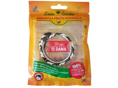 Narukvica protiv komaraca sadrži prirodne ekstrakte ulja citronelle,lavande,metne i pelargonije, kakobi bila unčikovita protiv komaraca i drugih insekata. Jednostavna je za korištenje, dugotrajna, vodootporna i sugrna za djecu. Narukvica traje 15 dana, preporučuje se nakon korištenja vratit u orgilano parkiranje kako bi trajala duža iskoristivost.