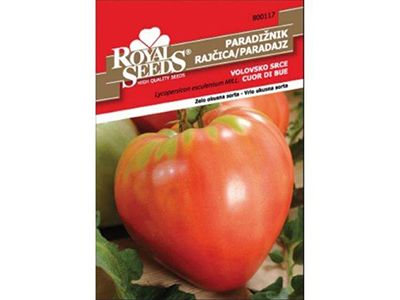 Paradajz Volovsko Srce je kasna, visoka i bujna sorta. Krupne plodove (800 g) karakteriše srčano sjajna blijedo crvena boja u obliku srca, vrlo mesnat...Pregledaj potpun opis proizvoda