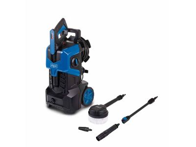 Scheppach HCE3000 električni perač visokim pritiskom savršen je dodatak za kuću, dvorište ili gradilište. Snažni motor snage 2400 W stvara maksimalni pritisak od 180 bara, čime pouzdano uklanja tvrdokornu prljavštinu, alge ili mahovinu sa prilaza, površina, terasa, vozila ili vrtnog namještaja. Mlaz visokog pritiska može se podešavati pomoću višenamjenske mlaznice za visoki pritisak i deterdžent, a radni pritisak prikazuje se na dršci pištolja. Automatsko uključivanje i isključivanje motora dodatno smanjuje potrošnju vode i energije.