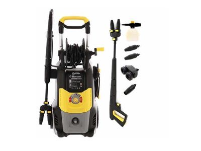 Perač visokog pritiska sa kolicima na dva točka sa ručkom i koturom za crijevo (crijevo 8m HP), dvije 3 aksijalne klipne pumpe od nerđajućeg čelika. Klipovi od kaljenog nerđajućeg čelika, automatski bajpas ventil sa ispuštanjem pritiska glave pumpe, jednofazni indukcioni motor sa termičkom zaštitom i 5m električnim kablom.