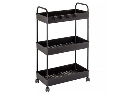Opis: Crna polica, izrađena od izdržljive plastike, predstavlja svestrano rješenje koje se dobro uklapa u svaku prostoriju. Njen čvrsti metalni okvir pruža stabilnost i izdržljivost, dok montirani kotači osiguravaju mobilnost, olakšavajući pomicanje kada je potrebno. Opremljena s tri korpe, polica omogućava efikasno skladištenje i organizaciju predmeta u kupatilu, kuhinji ili drugim prostorima. Osim toga, četiri praktične kuke, koje se mogu pričvrstiti i premještati na police po potrebi, nude fleksibilno prilagođavanje individualnim zahtjevima. Polica se izuzetno lako sastavlja i ne zahtijeva alate - jednostavno slijedite priložena uputstva za spajanje komponenti.