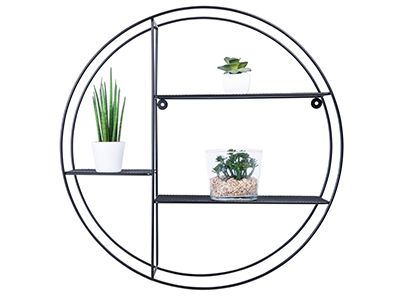 Ako vam nedostaje prostora za dodatne kupaonske dodatke ili samo želite svoj interijer ukrasiti zanimljivom kompozicijom sitnih biljaka, fotografija ili drugih ukrasa, okrugla zidna polica bit će savršeno rješenje. Žičana polica u stilu potkrovlja izrađena je od crno obojenog čelika. Okrugla forma u kombinaciji s asimetričnim rasporedom polica iznutra stvaraju modernu kompoziciju koja će biti savršena za industrijske interijere. Ažurna struktura daje polici lakoću, tako da svojim izgledom neće preplaviti ni manje prostorije. Zidne police ove vrste su vrlo raznovrsne. Mogu se koristiti u kupaonicama, kuhinjama, hodnicima, dnevnim boravcima, spavaćim sobama, pa čak i uredima ili uredima. Polica ne zahteva uvrtanje, pozadi ima dve klasične rupe za kačenje na zid. Set uključuje dva vijka i čepove.