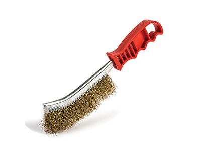 Jednoredna gusta žičana mesingana četka sa PVC ručkom. Četka sa strugačem za mehaničko odstranjivanje većih i tvrđih prljavština ili hrđe.