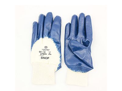 Opis: Ekonomična rukavica sa elastičnom manžetom sa plavim nitrilnim premazom za uporabu u vlažnim uvjetima rada