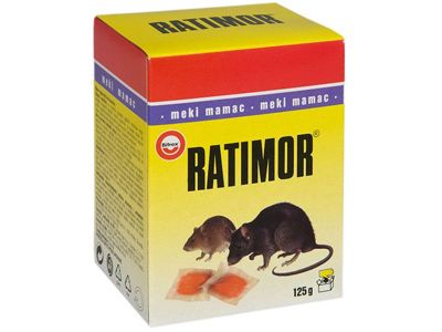 Rodenticid za suzbijanje miševa i štakora. Najviše jestiv oblik rodenticidnih mamaca, dokazano najučinkovitiji oblik rodenticida. Prednosti: -visoka učinkovitost već u malim količinama (jedno hranjenje), -zbog dodanih ulja i masti, Ratimor Brodifakum ostaje sočan dugo vremena -dodani stabilizatori sprječavaju oksidaciju -odgođeno djelovanje, što dodatno povećava učinkovitost -sadrži gorko sredstvo odbojno za ljude i životinje