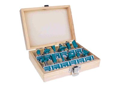 Vrsta - set glodalica. Promjer drške - 8 mm. Min. promjer svrdla - 4 mm. Maksimalni promjer svrdla - 32 mm. U setu - 12 kom. Materijal - drška: HSS, oštrica: volfram karbid. Prikladno za TR111216. Ravni nastavci: D6mm, D12mm, D16mm. Bit s V-utorom od 1/2” 90°. Bit lastin rep od 1/2”. 32 mm 45° svrdlo za skošenje. 1/2” nastavak za ugradnju ležaja. Kutijasto svrdlo od 1/4”. 2 komada okruglog nastavka: 1/4”, 3/8”. 1/4” svrdlo za jezgru. R-4 rimska ogee bit. Pakirano u kutiju od šperploče.