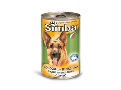 SIMBA Konzerva za pse Adult divljač.Potpuna hrana za odrasle pse sa ukusnim komadićima mesa. Hranjiva vrjednost i svarljivost: visok procenat dragocjenih proteina i dobra integracija vitamina rezultat su rada naših istraživačkih laboratorija. SASTOJCI: komadići od mesa divljači: meso i mesni sporedni proizvodi (govedina 6%), žitarice, šećer, minerali, prirodne arome. ANALITIČKI SASTAV: vlaga 80%, sirovi protein 8%, sirove masti 5%, sirova vlakna 1,21%, sirovi pepeo 3%.DODACI po kg: vitamin A 1.200 IJ, vitamin D3 160 IJ, vitamin E 5mg.