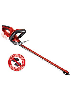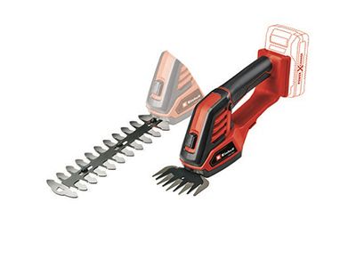 Einhell akumulatorske škare za travu i grmlje GE-CG 18/100 Li – Solo idealan su partner svim hobi vrtlarima koji cijene fleksibilnost kod održavanja svojeg zelenila. Za optimalnu snagu prijenosa laserski obrađenih oštrica brine se robusno metalno kućište. Uključene su oštrice za travu i oštrice za grmlje. Promjena između oštrica za travu i oštrica za grmlje vrlo je brza i jednostavna zahvaljujući specijalnom sistemu izmjene bez potrebe za alatom. Sigurnosni prekidač spriječava da korisnik slučajno uključi alat. GE-CG 18/100 Li imaju mekani prihvat na dršci za sigurno i ugodno držanje. Ovaj uređaj dolazi bez akumulatora i punjača.