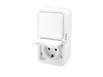 Utičnica dvopolna 16A + sklopka 10A 250V IP55 bijela 043-213 Commel