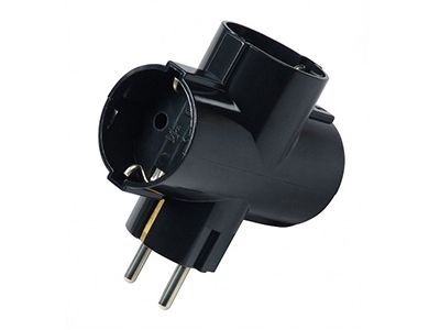 Utikač adapter 'T' 3xšuko 6338-4 crni