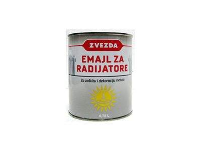 Završni emajl lak za kvalitetnu zaštitu novih i repariranje starih radijatora. Premaz visokog sjaja i odlične pokrivnosti. Emajl za radijatore je jednokomponentni, antikorozioni premaz na bazi vazdušno sušivog, alkidnog veziva, svijetlostalnih I antikorozionih pigmenata, punila I organskih rastvarača. Koristi se kao za zaštitu i dekoraciju novih i reparaciju starih radijatora i cijevi za grejanje. Može se primeniti samostalno ili u sistemu sa osnovnom bojom za metal ili antikorozivnim temeljom. Izdržava izlaganje povišenim temperaturama do 120C.Prednosti:- visok sjaj- dobra otpornost na atmosferske uticaje- dobra mehanička svojstva (elastičnost I tvrdoća)- otporan na toplotu do 80°CPotrošnja:7-9 m2/l u jednom sloju.Gustina:1,03-1,05 gr/cm3Vrijeme sušenja: Potpuno suh nakon 48h.Priprema p:odlogeMehanički ukloniti tragove korozije i ostatke starog premaza brusnim papirom ili čeličnom četkom. Masnoću i nečistoće sa metala ukloniti krpom natopljenom sredstvom za odmašćivanje. Na pripremljenu površinu nanijeti osnovnu boju za metal ili antikorozivni temelj u 1-2 sloja.Nanošenje:Prije upotrebe sadržaj dobro promiješati. Emajl za radijatore nanijeti četkom, valjkom ili špricanjem u 2 sloja preko pripremljene površine ili nanijetog osnovnog premaza. U zavisnosti od tehnike nanošenja, boju razrediti maksimalno 5% Uljanim razređivačem Premaz je suv na dodir posle 6-8h, a potpuno nakon 48h. Ponovno nošenje preporučujemo poslije 24h.